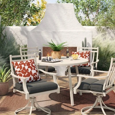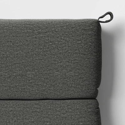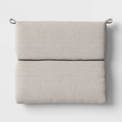 Infuse your outdoor seating space with comfort and style with this Heathered Outdoor Chair Seat Cushion from Threshold™. This outdoor chair seat cushion is made from 100% recycled polyester fabric with fade-resistant properties to help keep it as good as new in your outdoors. Featuring a 4.5-inch thick design with soft filling, it helps maximize outdoor sitting comfort. Best of all, it’s designed with loops at the sides for easily attaching it to the frame of your outdoor chair. Showcasing a heathered finish and a hinged design, it’s sure to add sleek style to your patio, balcony or porch.