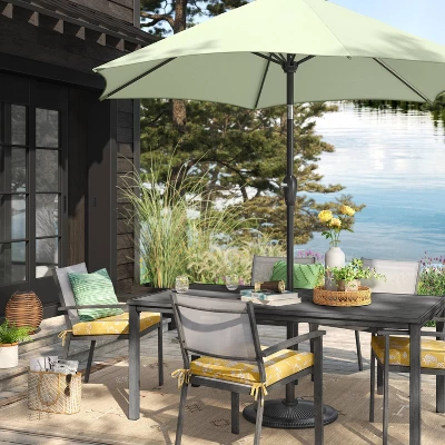 Add a new layer of elegance to your outdoor flooring with this Cactus Silk Pattern Outdoor Rug from Threshold™. This woven rug features a cactus silk pattern of small geometric motifs on a tan-colored background, with fringed tassels distinctly marking the short ends for a dynamic aesthetic that unlocks unlimited design possibilities to enhance any open setting. Plus, the rectangular rug boasts a flat-pile construction that stands up against heavy traffic areas and is easy to hose clean with water.